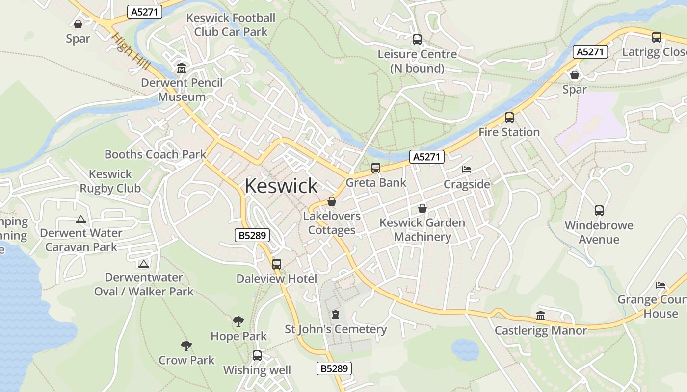 The holiday home is within 70 km of Carlisle Lake District airport and 3.7 km from such cultural points of interest as Ashness Bridge. The nearest beach is nearly a 20-minute walk from the Keswick property, while the long lake "Derwent Water" is approximately 10 minutes away by car.